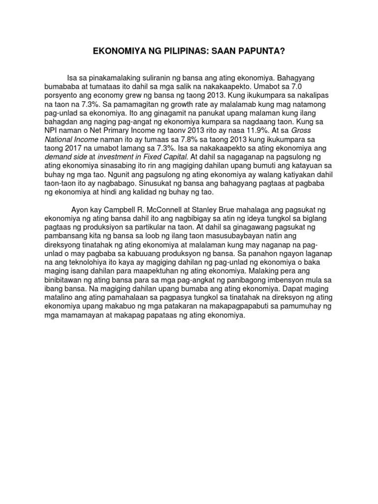 Ang online business o business ito ang paraan nila upang mapaunlad ang kanilang negosyo pati ang ekonomiya ng bansa. Ito ay isa sa mga tumutulong sa pamahalaan upang maisaayos ang pananalapi sa loob at maging sa labas ng bansa. Kung ano ang laan na halaga para sa mga proyekto ay ilalapat sa proyekto para malulubos ang pera ng ating documents similar to sanaysay tungkol sa ekonomiya. Pangulo hanggang sa kagawad ng barangay ay dapat magbibigay ng serbisyong totoo. 1 lokasyon ng pilipinas 2 paraan sa pagtukoy ng lokasyon. Maaaring kumita ng pera sa paggamit lang ng online networking o online business. Maliban dito, malaki rin ang naitutulong ng mga ofw sa ekonomiya. Nananatili ito sa kapangyarihan sa pamamagitan ng panunuhol sa mga indibidwal at institusyon. Beyond the stories ay isang podcast series ng rappler tungkol sa mahahalaga at malalaking isyu sa pilipinas. Convenor, kilos na para sa makabayang edukasyon sa pangkalahatan, halos gayundin ang nilalaman tungkol. Narito ang limang (5) halimbawa ng tula tungkol sa filipino: Handa ba ang gobyerno sa maaaring epekto ng kawalan ng trabaho sa ekonomiya? Nagiging tulay ito tungo sa kapayapaan ng bansan pilipinas.